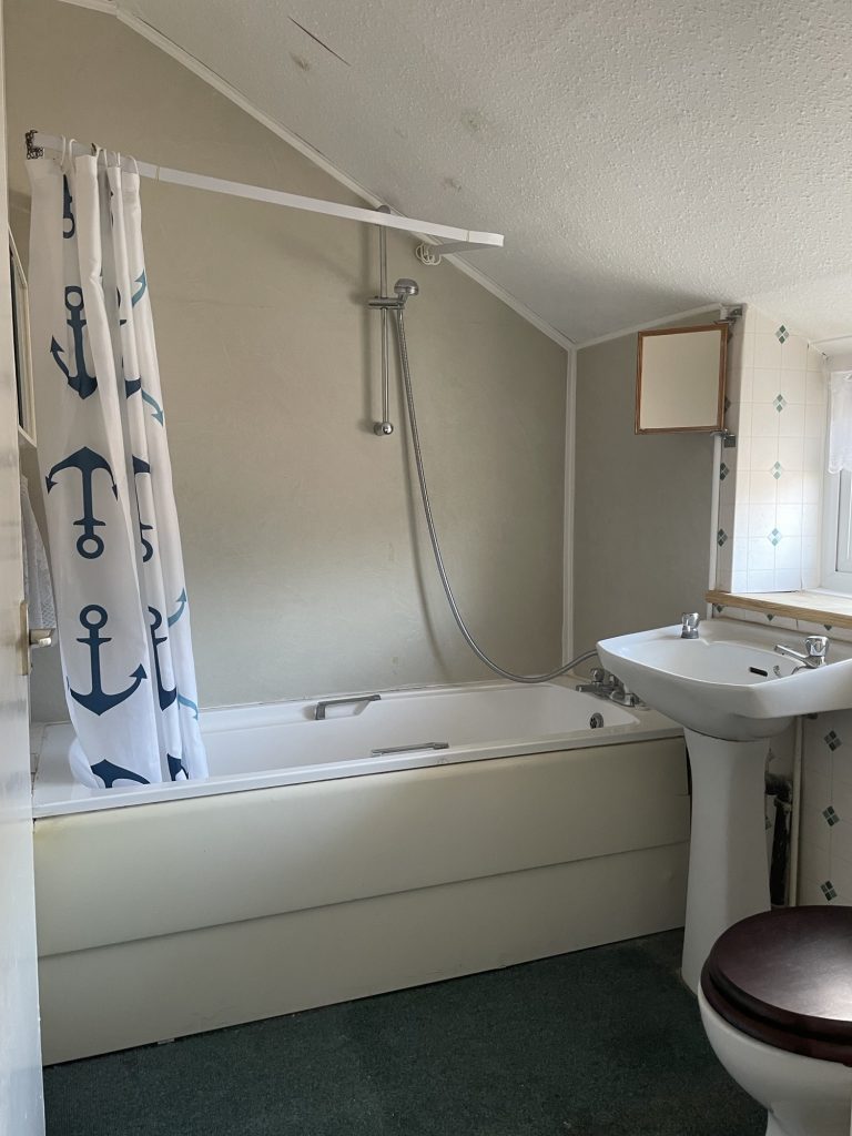 Bathroom: Panel bath, pedestal wash hand basin, WC