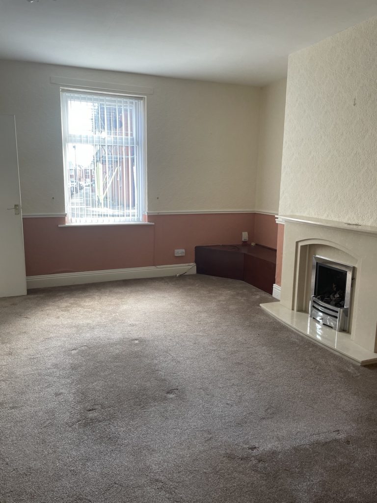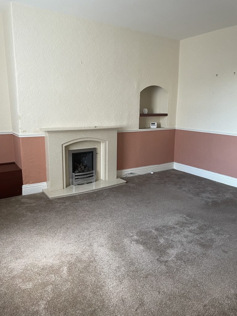 Living Room: 4.8m x 4.54m (15’10 x 14’10) fitted fireplace feature along one wall.